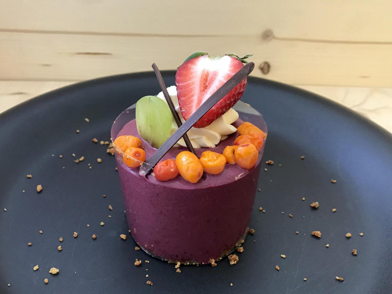 Vahukoor*, toorjuust*, vanilje, suhkur, taluvõi*, küpsised*, metsamarja püree