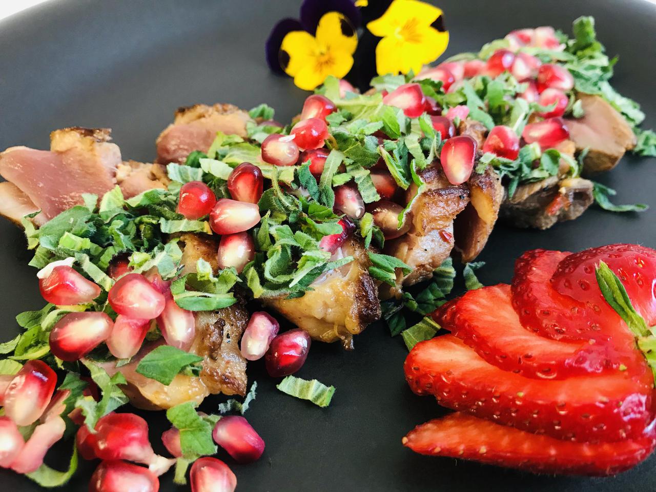 Röstitud pardifilee, värske piparmündi ja granaatõunaga