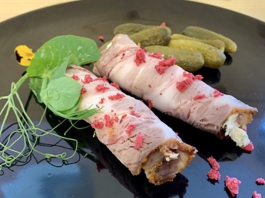 Seapraerull sinepikreemi ja marineeritud väikese kurgiga