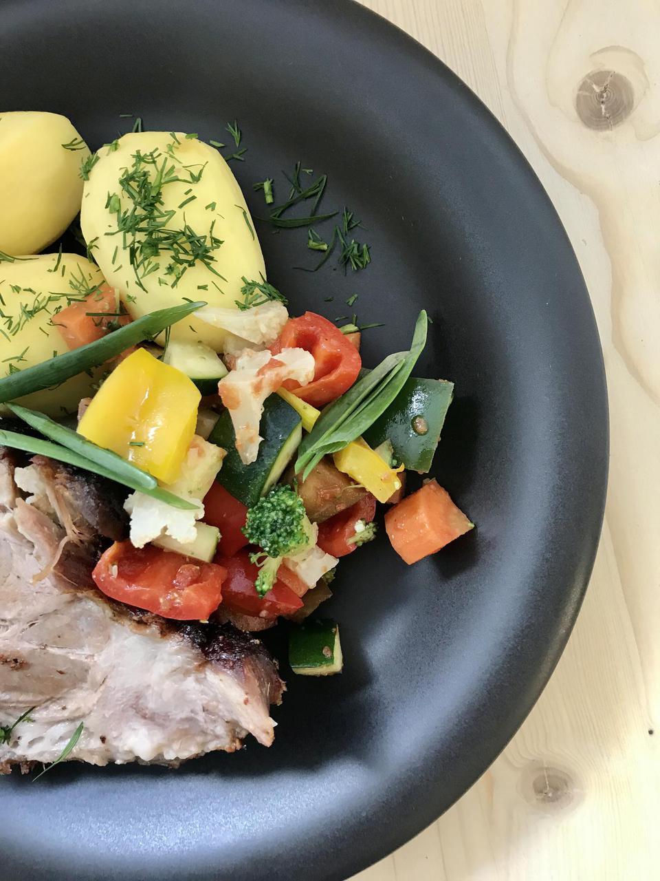 AHJUS KÜPSETATUD SEAKAELAKARBONAAD KÖÖGIVILJADEGA