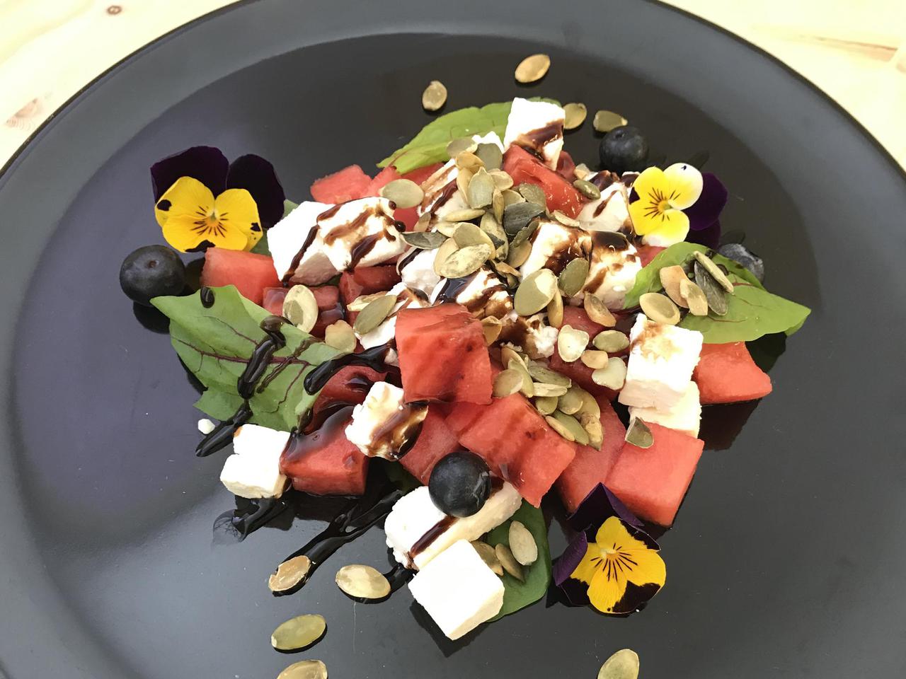 Arbuus, fetajuust*, kõrvitsaseemned, balsamico