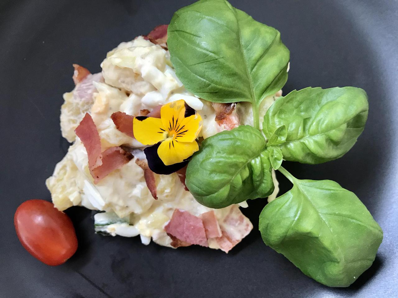 Kartul, keedusink, porgand, marineeritud ja värske kurk, sibul, muna*, majonees*, hapukoor*, sinep*, pipar, sool, suhkur